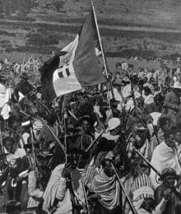 A los veinte años, en 1895, la vida le ofrecía un desafío que podría terminar en la muerte, la prisión o la gloria. Italia se preparaba para invadir Etiopía. Intentando aumentar su poderío y su zona de influencia en el continente africano, las fuerzas armadas italianas avanzaron por el río Mareb con el objeto de vencer al emperador etíope Menelik II. El contraste de cifras era alarmante: 15.000 soldados italianos contra 120.000 etíopes, más el apoyo de otras poblaciones africanas que se acoplaron al emperador para desplazar a los europeos. Los africanos atacaron, sitiaron por quince días al enemigo y lograron su rendición con una cifra aproximada de 5.900 muertos y 4000 prisioneros.
